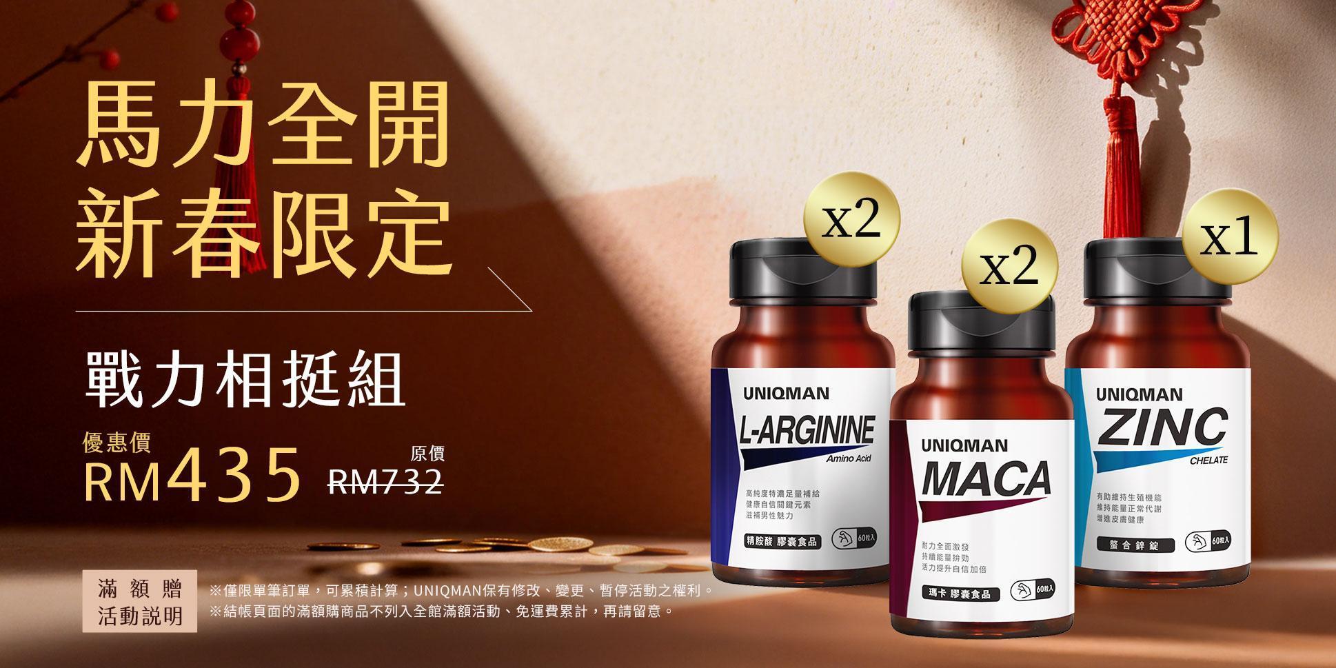 UNIQMAN 戰力持續組 瑪卡(60粒/瓶)+螯合鋅(60粒/瓶)+精胺酸(60粒/瓶)