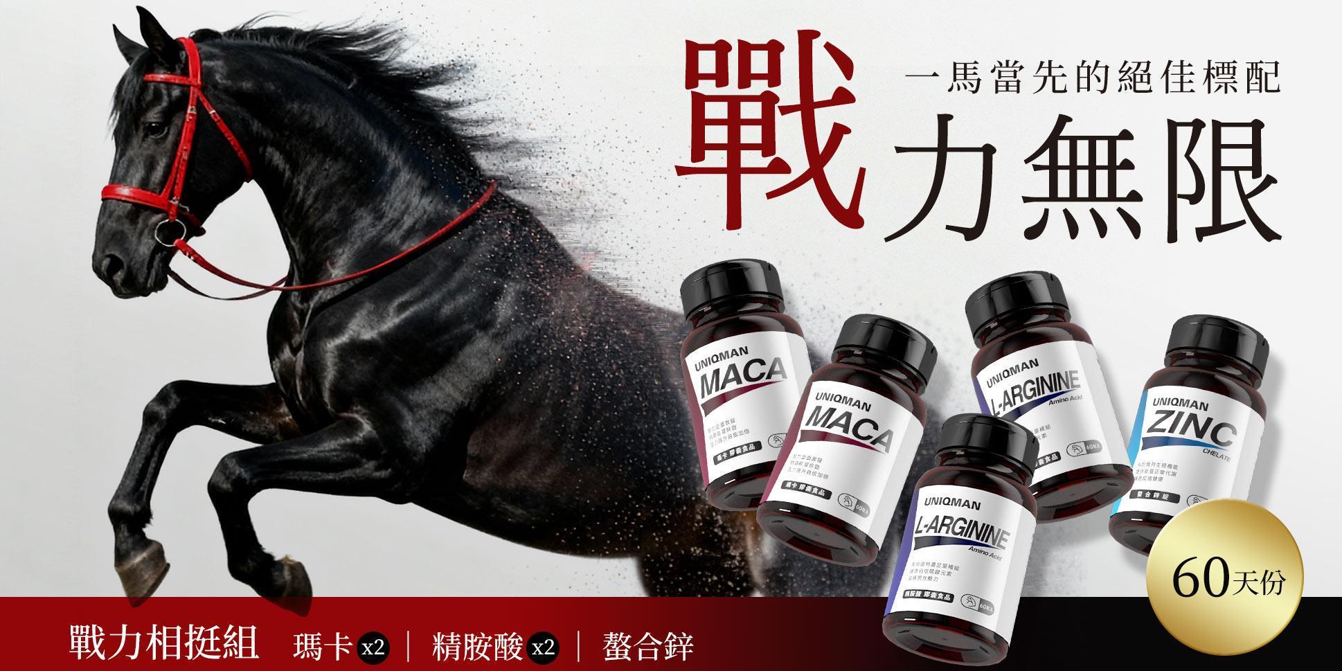 UNIQMAN 戰力相挺組 瑪卡(60粒/瓶)2瓶組+螯合鋅(60粒/瓶)+精胺酸(60粒/瓶)2瓶組